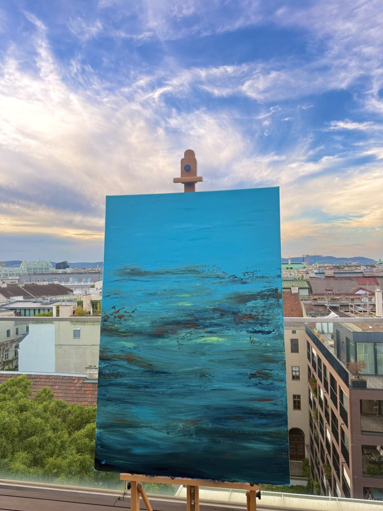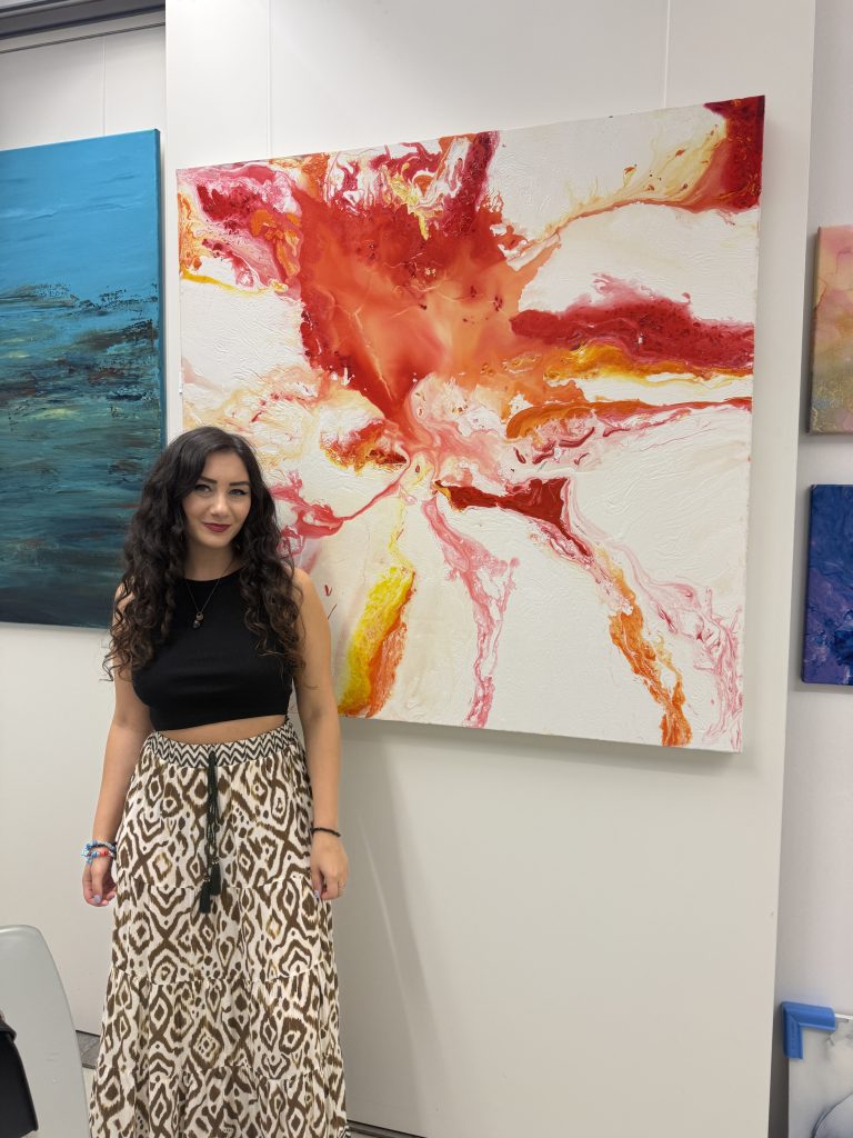 Lori Karamanlian (1997) is a self-taught abstract artist whose work explores the emotional and spiritual layers of the human experience. With a background in music production, she approaches painting much like composing a piece of music.