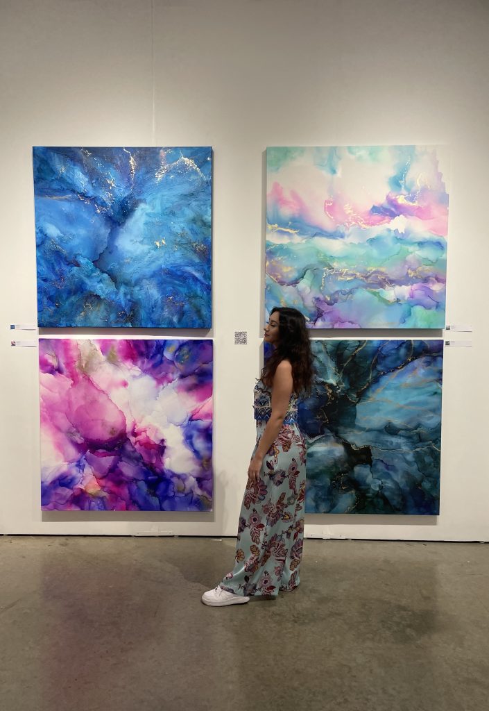 Her work has been exhibited in major international art fairs, including New York, Miami, Vienna, with highlights such as being featured as a spotlight artist at Red Dot Miami.